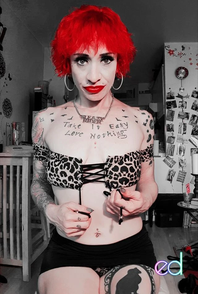 Im a totally eccentric "alt girl" who loves to color my hair in bright, vivid, and eyecatching colors. I love to dress with an aire of class that perfectly compliments a slutty, seductive personality. Covered in beautiful ink with a total of 24 piercings, I carry a powerful confidence and intense strength of character that allows me to float seamlessly between the posh and the common while projecting the best aspects of both worlds.